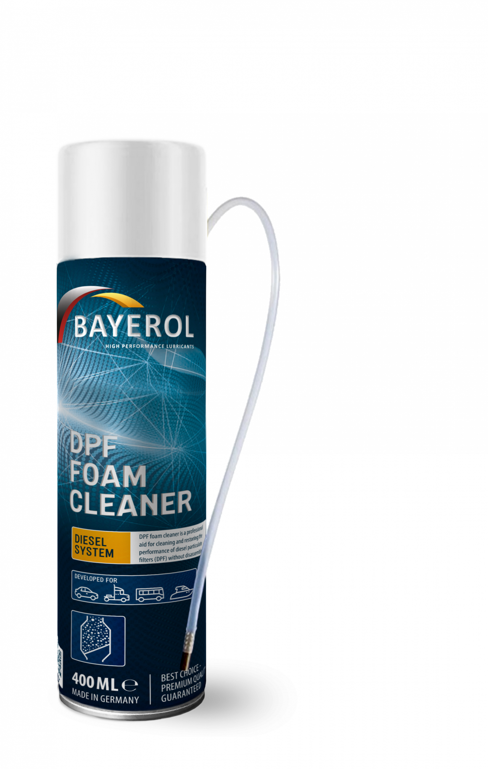 The product will prevent the eventual serious fouling of the diesel particulate filter, which will result in expensive replacement and possible consequences in other parts of the combustion system – for example the turbo charger. Bayerol DPF Foam Cleaner will improve the efficiency of the vehicle.